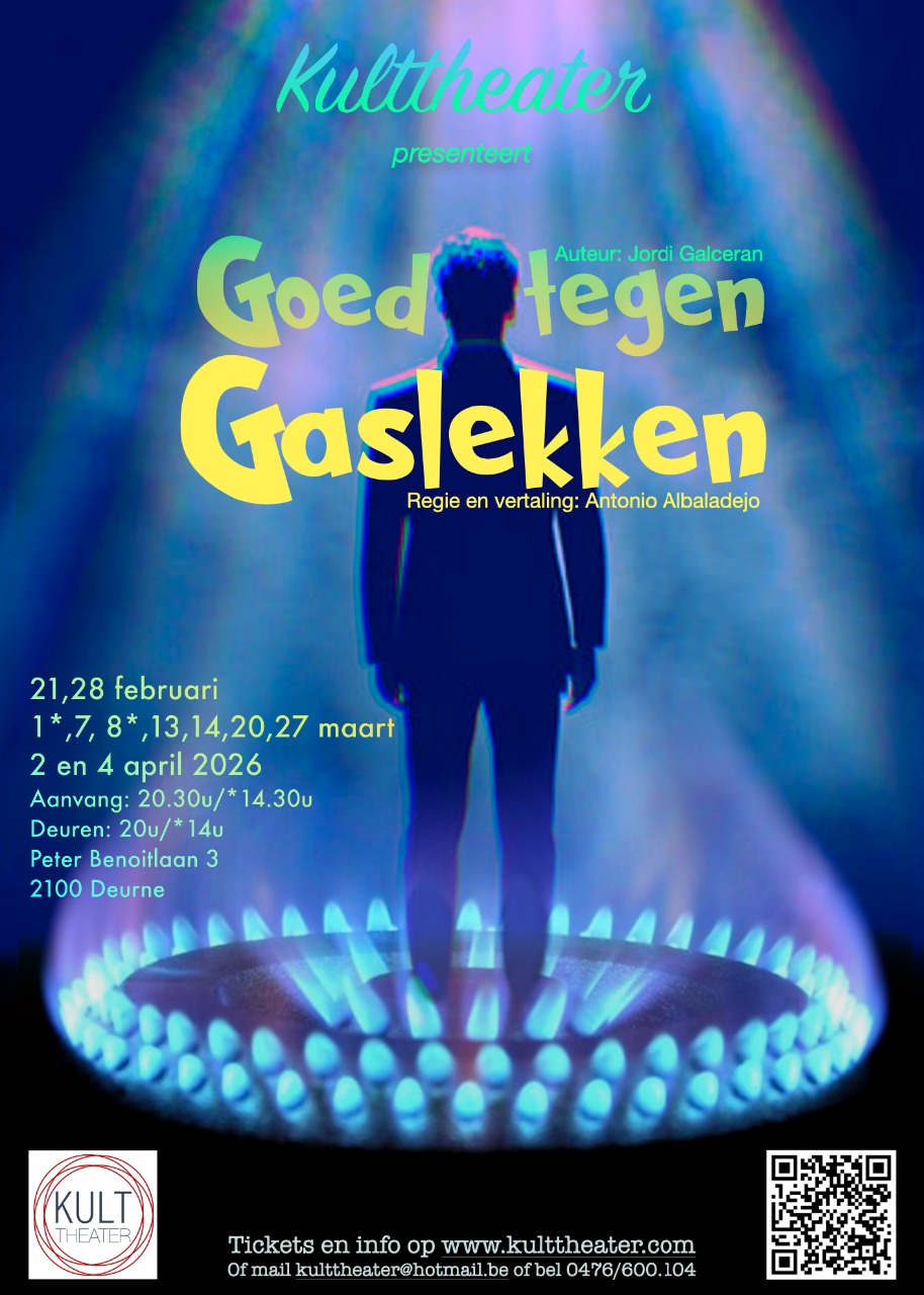 Terwijl het Kulttheater nog ten volle floreert met 'Radicale', stelt het met trots haar nieuwe productie voor. 'Goed tegen Gaslekken' is een komedie van Jordi Galceran, vertaald en geregisseerd door Antonio Albaladejo en gespeeld door Raf De Bruyn, Ilona Vos, Michèle Geunes, Pascal Van den Berghe en niemand minder dan Chris Van Riet! Bestel je tickets online of mail naar kulttheater@hotmail.be of bel naar 0476/600.104